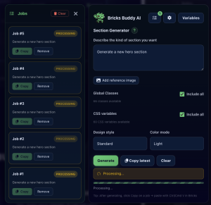 BricksBuddy AI allows you to run multiple generation jobs in parallel. No need to wait for one to finish before starting another.